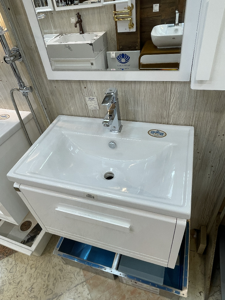 روشویی کابینتی کیهان سفید.برند کاترین با سنگ روشویی مروارید