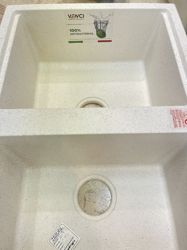 سینک گرانیتی ونسی از تلفیق مواد %80 پودر سنگ گرانیت و %20 رزین همراه با لایه محافظتی روی سطح سینک تشکیل و ساخته شده است.