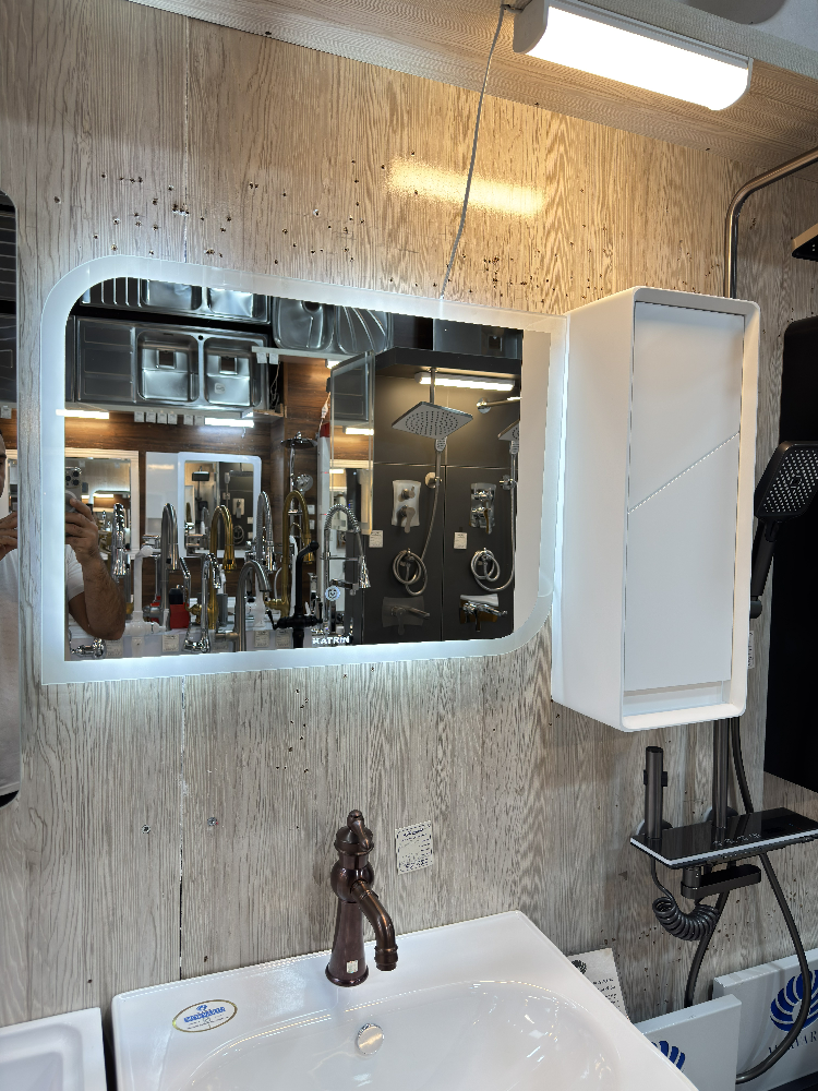 آینه ها برند اردکان یزد با بهترین شیشه بدون موج و ضخامت جیوه بالا و چراغدار با دکمه پاور تاچ