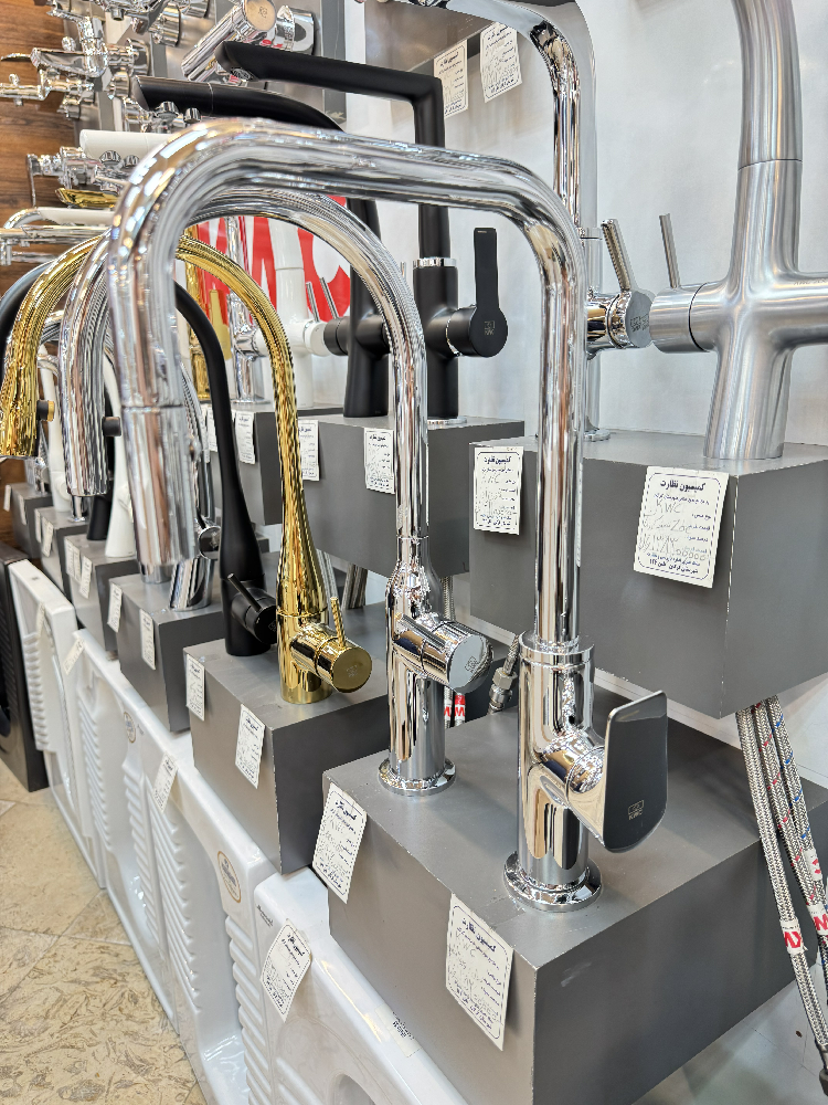 علم ظرفشویی بلند و کشیده با دو خم 90 درجه در علم ظرفشویی که این طراحی برای شستشوی ظروف بزرگ کمک میکند که ظروف دیگر به زیر علم شیر برخورد نکنند و به راحتی ظروف را زیر شیر بتوانید بچرخانید