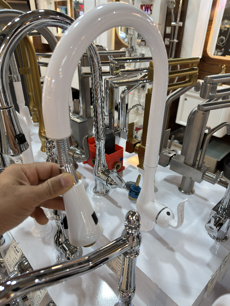 ارتفاع این شیر با قوس علم شیر باعث شستشوی راحتتر ظروف بزرگ می شود که در حین شستشو ظروف به زیر شیر برخورد نکنند و همچنین آبریز این شیر در ارتفاع استاندارد قرار گرفته است