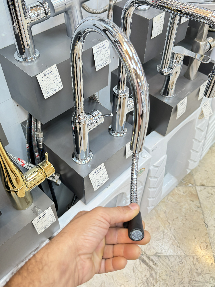 علم ظرفشویی بلند با قوس عالی در این شیر که این طراحی برای شستشوی ظروف بزرگ کمک میکند که ظروف دیگر به زیر علم شیر برخورد نکنند و به راحتی ظروف را زیر شیر بتوانید بچرخانید