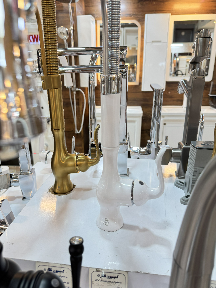 شیر ظرفشویی اوپال فنری برند رابو (رنگ سفید و طلا مات)