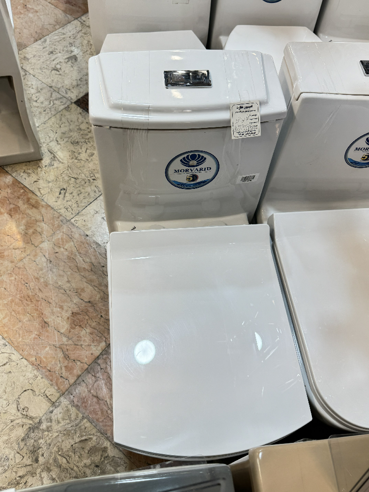 توالت فرنگی بیده دار (خودشور) برند مروارید مدل مگا رنگ سفید