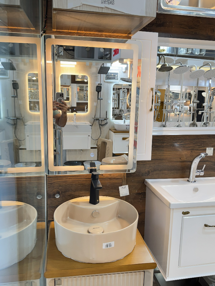 آینه چراغدار با دکمه پاور لمسی از برند اردکان یزد با ضخامت جیوه بالا و نوع جیوه سبز که بالاترین کیفیت جیوه را دارد ساخته شده است.