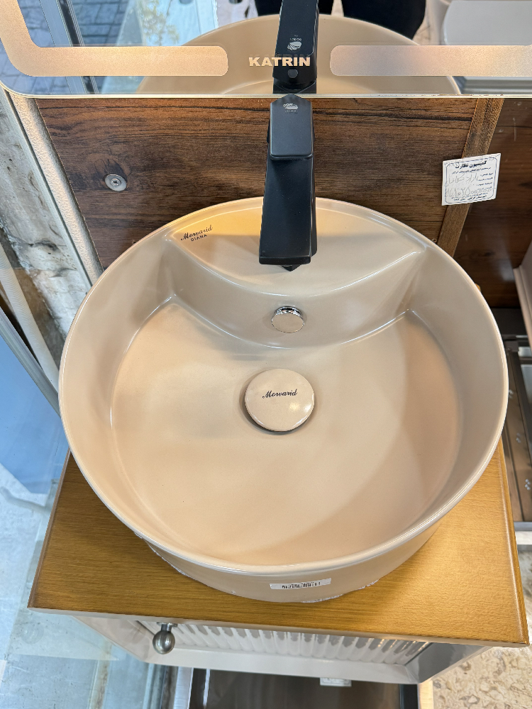 سنگ روشویی برند مروارید مدل دیانا نسکافه ای همراه با زیرآب رایگان سرامیکی نسکافه ای از برند مروارید