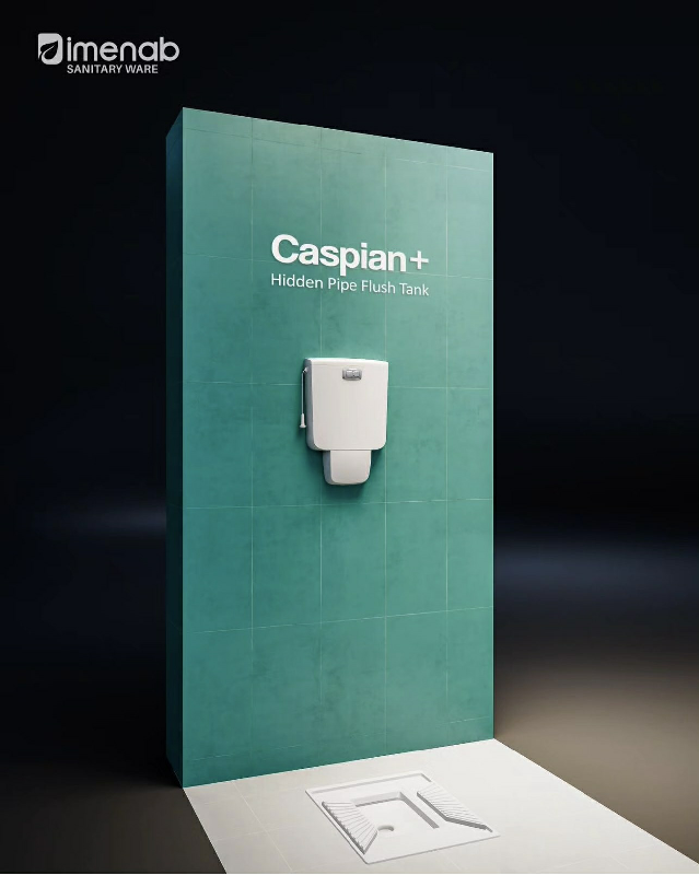 فلاش تانک کاسپین پلاس با قابلیت توکار کردن لوله های تخلیه آب و توکار کردن شیلنگ و شیر پیشوار پرکن آب مخزن که زیبایی عالی به سطح سرامیک توالت میدهد و از جرم گرفتن قسمت پایین لوله تخلیه که روی زمین است و بد نما میشود جلوگیری میشود.