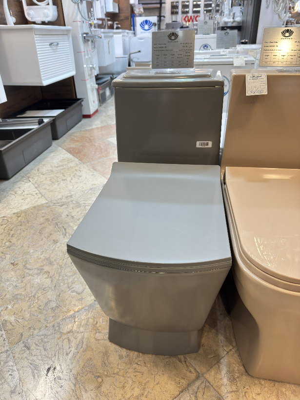 توالت فرنگی مروارید مدل مگا طوسی بیده دار(خودشور آب گرم و سرد)