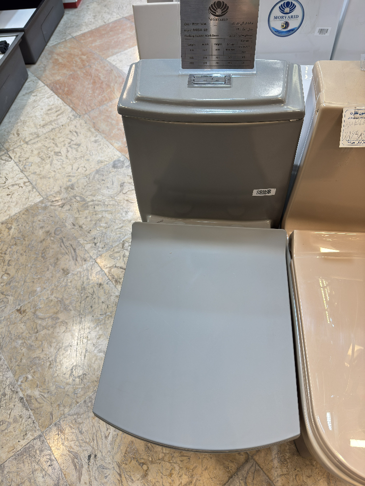 توالت فرنگی بیده دار (خودشور) برند مروارید مدل مگا رنگ طوسی
