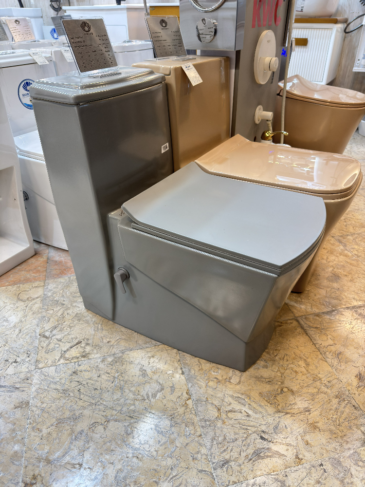 توالت فرنگی مروارید مدل مگا طوسی بیده دار(خودشور آب گرم و سرد)